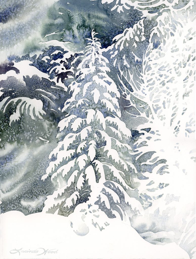 “Blizzard Out My Window” by Lucinda Wood, watercolor