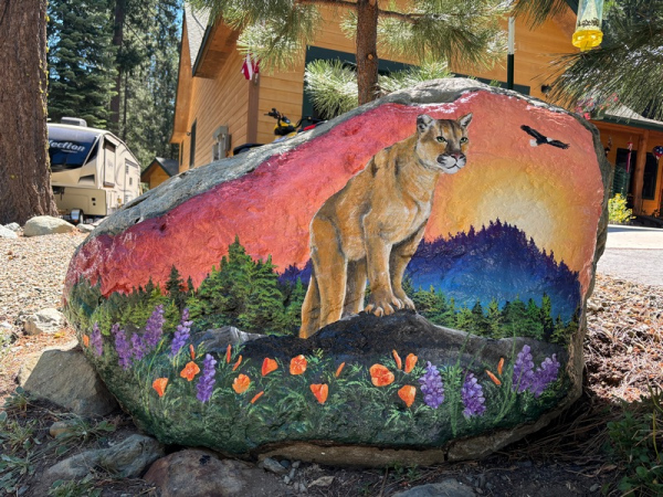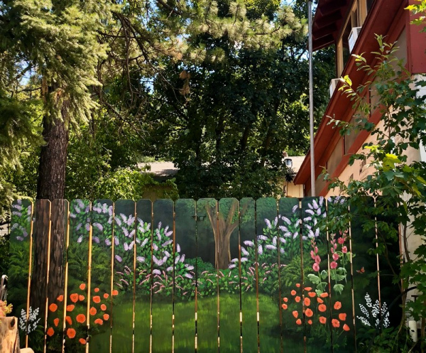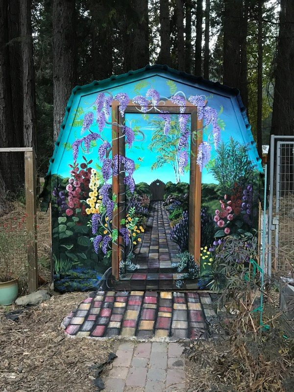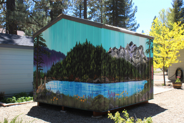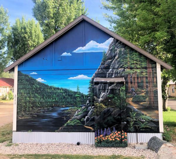 I am originally from the Sacramento area and have been a Plumas County resident since 2015. Though my legal name is Tina Thorman, most know me by my artist name of Trixie Hollyhox. I have been creating murals since the summer of 2020, when I began my business, Hollyhox Painting. Several of my murals can be seen around Plumas County and beyond. I have worked with acrylics since I was very young, and still enjoy painting with them on a variety of surfaces. I specialize in fantasy and scenic art, using bright colors with whimsical touches.